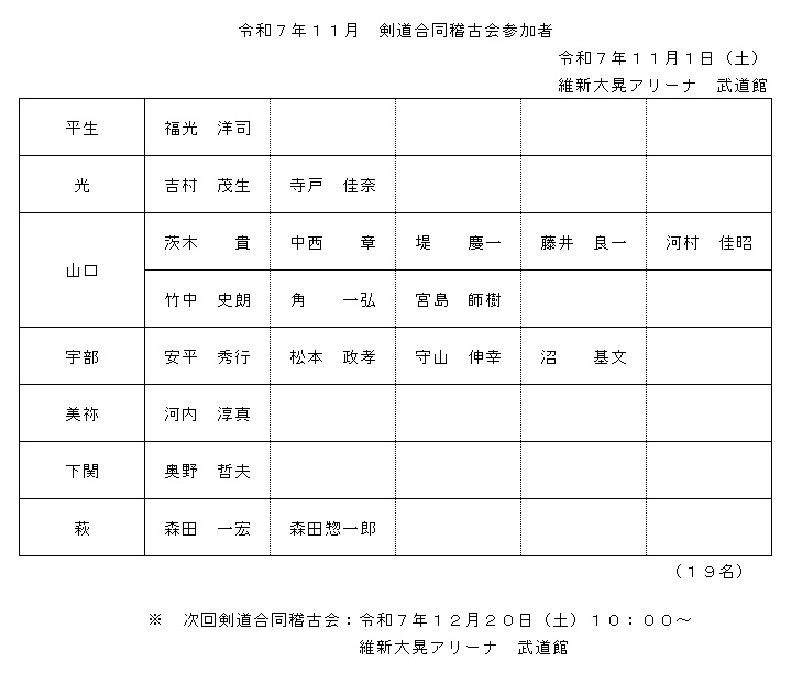令和7年11月 剣道合同稽古会参加者