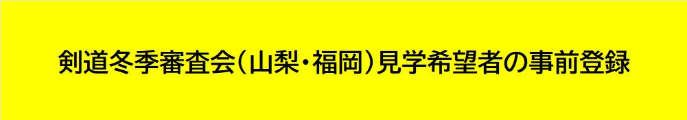 全剣連から剣道冬季審査会(山梨・福岡)における見学者の事前登録方法の案内がありましたので、見学を希望される方は、下記要領に従って登録をお願いします。