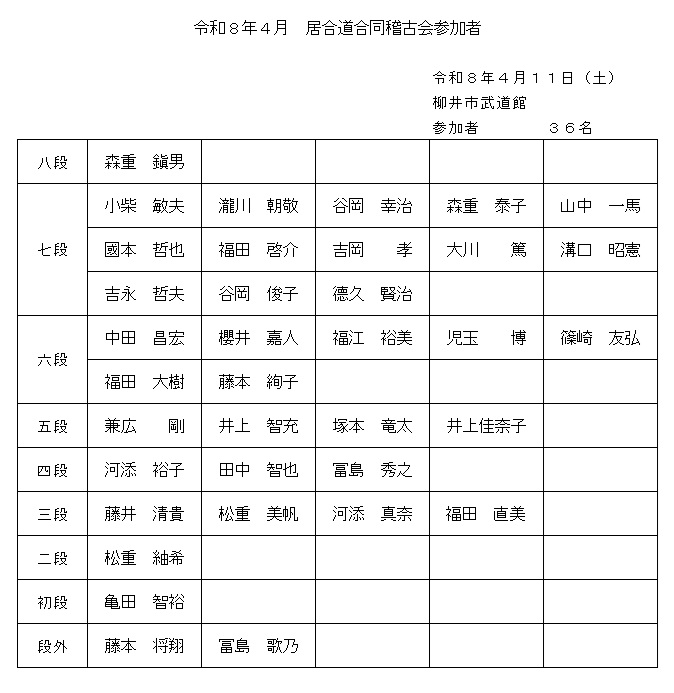 令和8年4月 居合道合同稽古会参加者