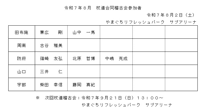 令和7年8月 杖道合同稽古会参加者