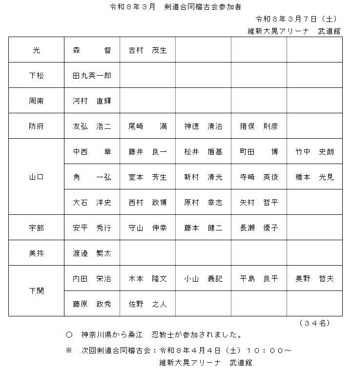 令和8年3月 剣道合同稽古会参加者